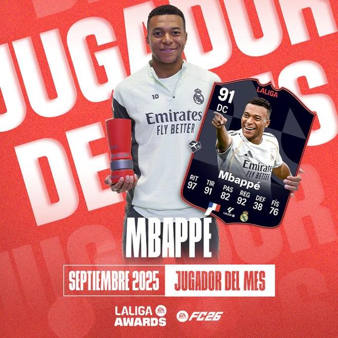 - 西甲 | 4场5球1助,姆巴佩当选西甲9月最佳球员