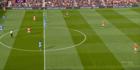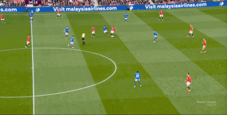 比如这个右路的4防3,达洛特和卢克-肖两人扑一点,布鲁诺和芒特都没有注意到身后空间: