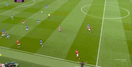 于是在第8分钟,曼联就再次利用到了343打四后卫球队的体系优势,阿玛德-迪亚洛进入空位得球: