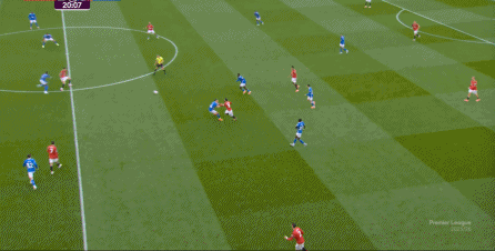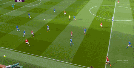 在过程中可以看到,对手打出威胁的关键点是又突破了卢克-肖的防守,锅是他的跑不掉,但在这之前,卢克-肖已经在防范对手在中路的接球了: