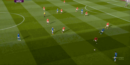 在这次5防3成功之后,曼联立刻就打出了反击,利用的其实就是阿玛德-迪亚洛这一点,只要摆脱掉对方防守意识可能不够的边锋球员,就会立刻进入到谁都管不到的空位里: