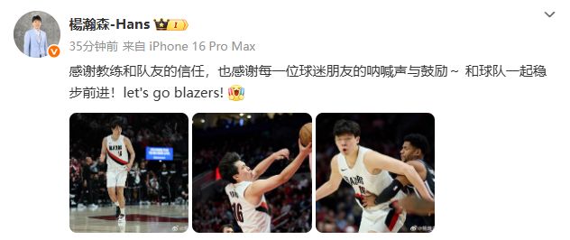 - NBA | 杨瀚森赛后更新社媒:感谢大家的鼓励,摆正心态,继续前进!