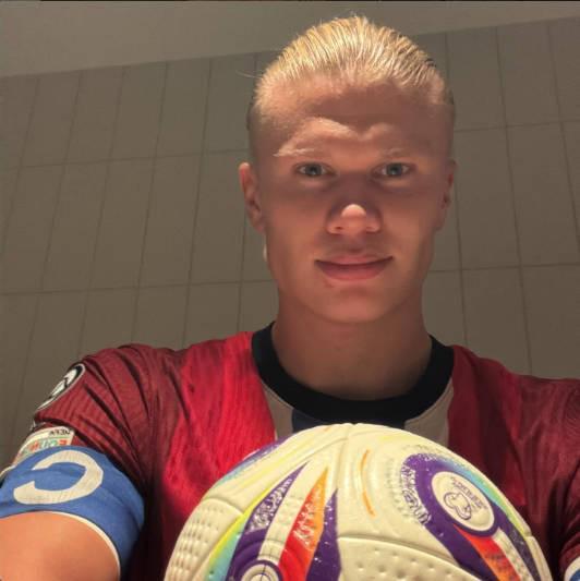 比赛结束后,哈兰德晒出了自己带走比赛用球的照片,可以看到,他手上还戴着队长袖标。根据统计,这是他职业生涯(国家队+俱乐部)当中的第27次帽子戏法。
