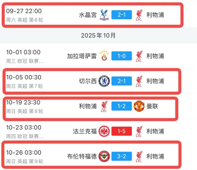 - 英超 | 多少有点反差,利物浦英超开局5连胜后紧跟着一波4连败