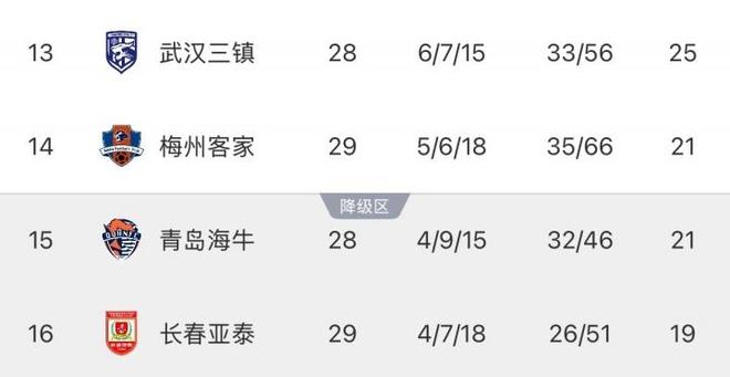 - 中超 | 中超保级形势:2队上岸海牛赢球亚泰即降级极端情况3队末轮同分