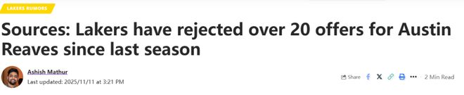北京时间11月12日,湖人队对奥斯汀-里夫斯极为重视。你可能会问,重视到什么程度?据《湖人日报》消息人士透露,自上赛季以来,湖人队已拒绝了超过20份关于里夫斯的交易报价。