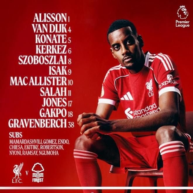 - 英超 | 利物浦vs森林:萨拉赫、伊萨克、加克波首发,阿利松复出