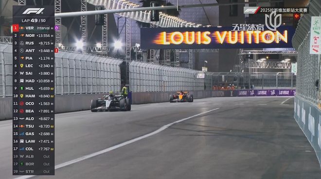 随后几圈因为有罚时的存在,安东内利依旧不减速快步向前,而皮亚斯特里也放慢了追击的步伐。