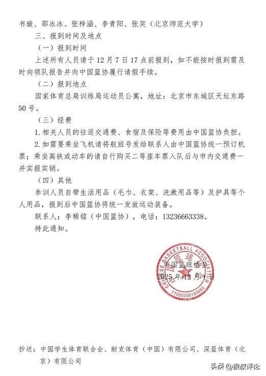 北京时间12月4日,根据媒体人“我爱女篮”的报道,中国篮球协会将于12月7日至31日组织国家女篮特训营,本次特训营将坚持强弱项、补短板的基本方针,着力提升个人能力和战术素养,为后续国家队选拔储备优秀后备人才。