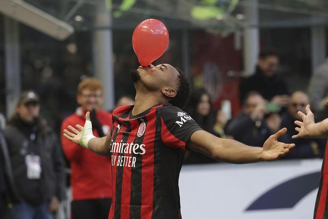 恩昆库打入加盟米兰的联赛首球,进球后展示了标志性的吹气球庆祝。