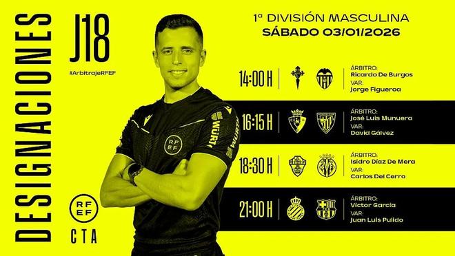 - 西甲 | 西甲第18轮第2比赛日裁判:加西亚执法巴萨客战西班牙人