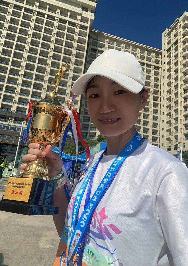 她不懂什么配速,也不懂什么装备。第一次跑10公里比赛,她穿着一双在抖音上买的、99块钱的休闲鞋就去了。那场比赛高手云集,结果这个穿着99元鞋子的大姐,跑了第12名。